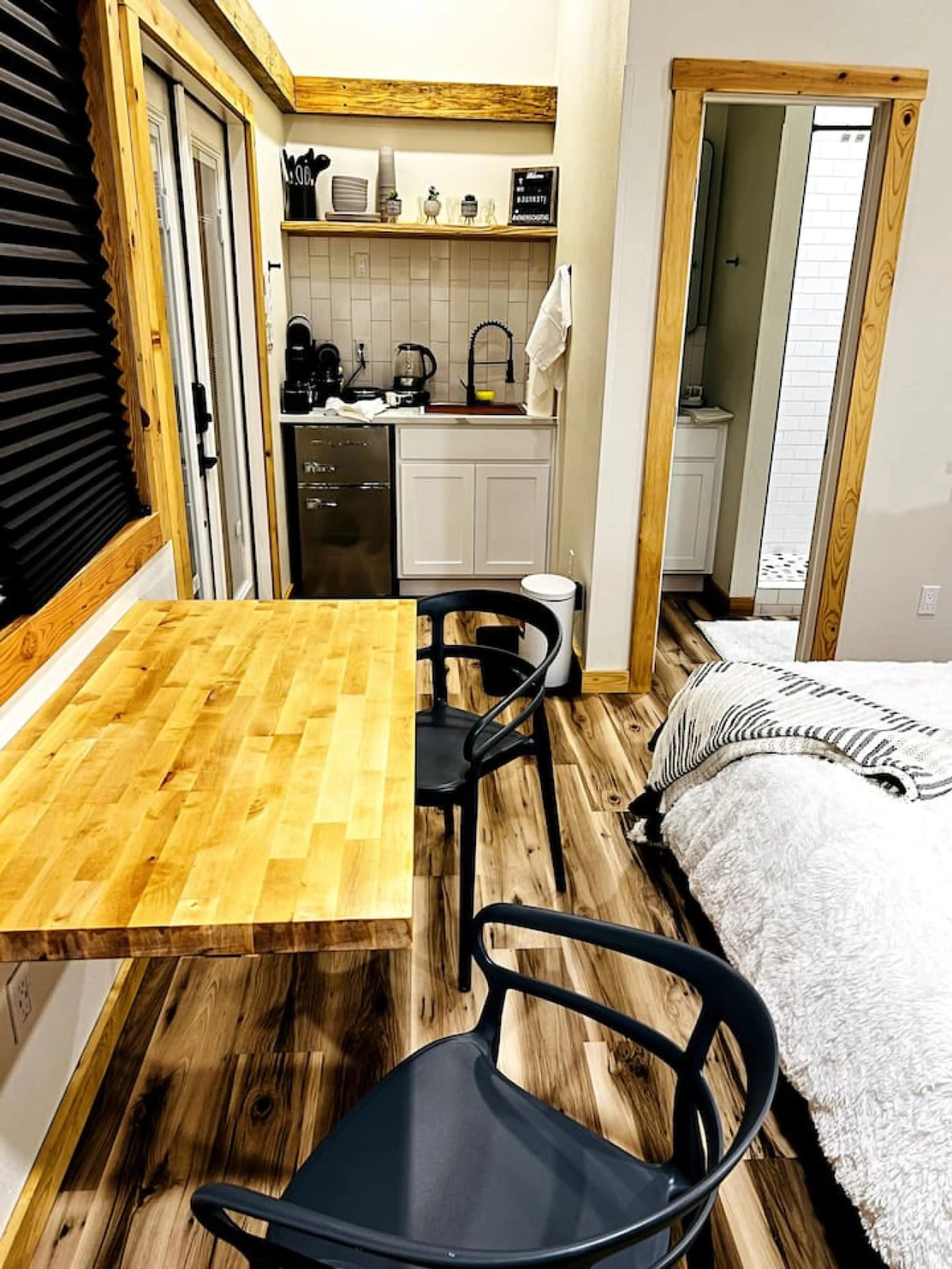Step into solitude at The Cedar your own Stillness Studio —a sleek and modern micro-retreat where silence speaks and rest renews. With clean design and a calming palette, this casita welcomes you to breathe deeper and be fully present. Enjoy a spa-like rain head shower after a day by the fishing lak...